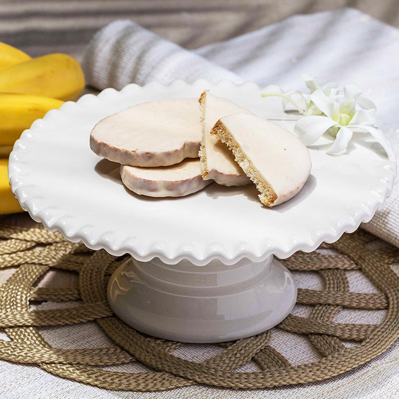 薄くカットしたバゲットをやさしくじっくり焼き上げて、バナナ風味のチョコレートでコーティングしたさくさくのラスクです。